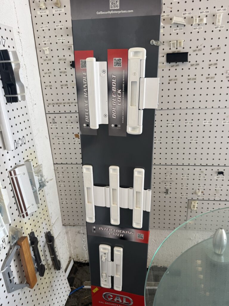 These locks are very practical and are among the best deadbolt options for sliding doors. There are different types—some use a simple hook, while others use a pin that goes inside the door, which requires drilling a hole. This older pin-style lock is not recommended and was commonly used many years ago.